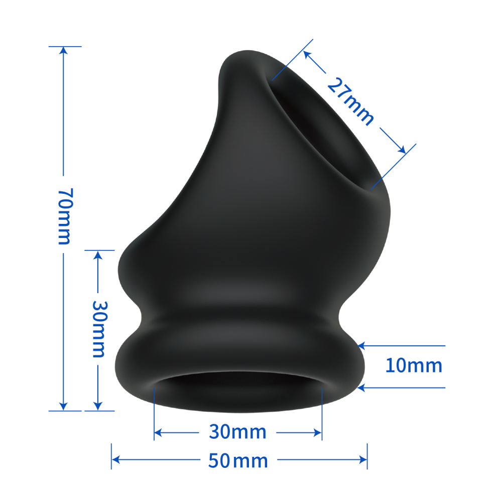 Эрекционное кольцо с анатомической формой корпуса, предназначенное для одновременного охвата пениса и мошонки. Изготовлено из мягкого силикона высокой эластичности — материал легко растягивается и возвращает исходную форму. Конструкция включает верхнее кольцо для пениса и объёмный нижний отсек для мошонки. Поверхность гладкая, приятная на ощупь.