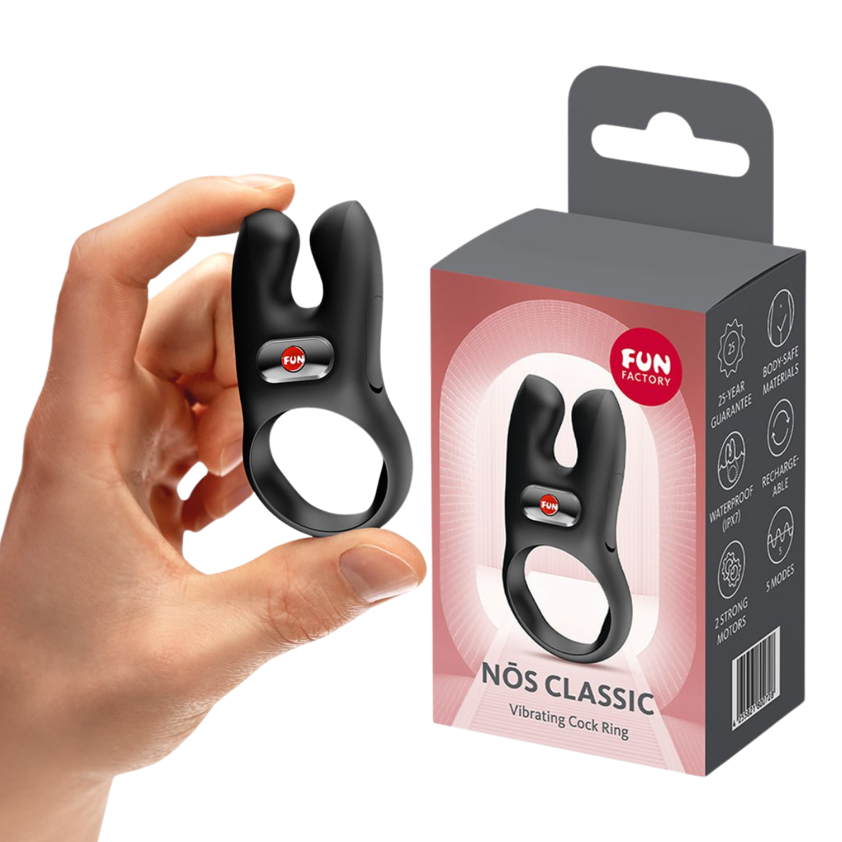 Эрекционное кольцо с двойной вибрацией Nos разработано с учетом мужской и женской физиологии. Продление и усиление эрекции у мужчины и точечная стимуляция околоклиторальной зоны у девушки. Пухлые удлиненные ушки разработаны специально с учетом строения клитора. А ловкость рук приберегите для других ласк.