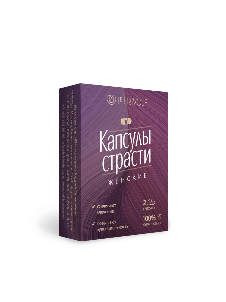 Женские капсулы страсти — возбуждающее средство в удобном формате и с натуральным составом, созданные на территории Алтайского края. Капсулы предназначены для повышения чувствительности, усиления влечения, заботы о здоровье.
