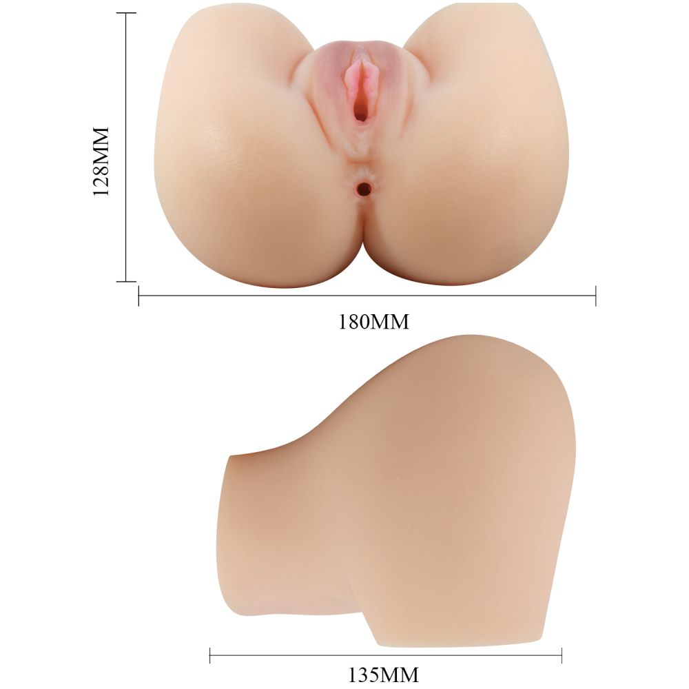 Мастурбатор в виде вагины с вибрацией. Имеет два отверстия. В комплекте идет виброяйцо с выносным пультом управления. Режим вибрации регулируется с помощью колесика, длина виброяичка 5,5 см, диаметр 2,5 см. Работает от 2-х батареек АА, в комплект не входят.