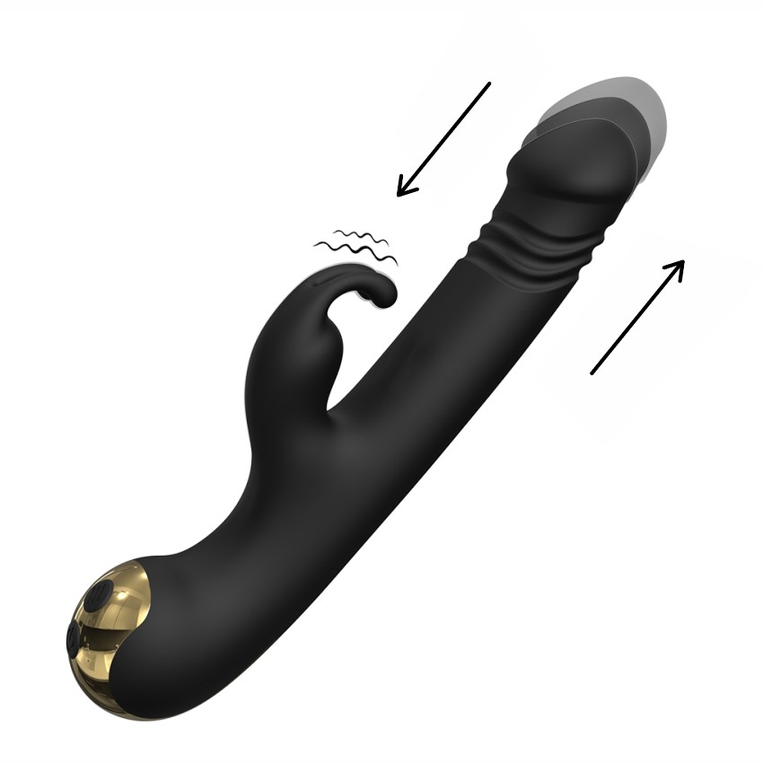 Оригинальный вибромассажёр с вибрацией и возвратно-поступательными движениями внесёт яркость и разнообразие в интимную жизнь одинокой дамы или пары. Может использоваться для прелюдии или усилить удовольствие во время секса. Разнообразные режимы вибрации и возвратно-поступательных движений повысят уровень наслаждения. Специальный отросток в виде кролика будет стимулировать клитор.