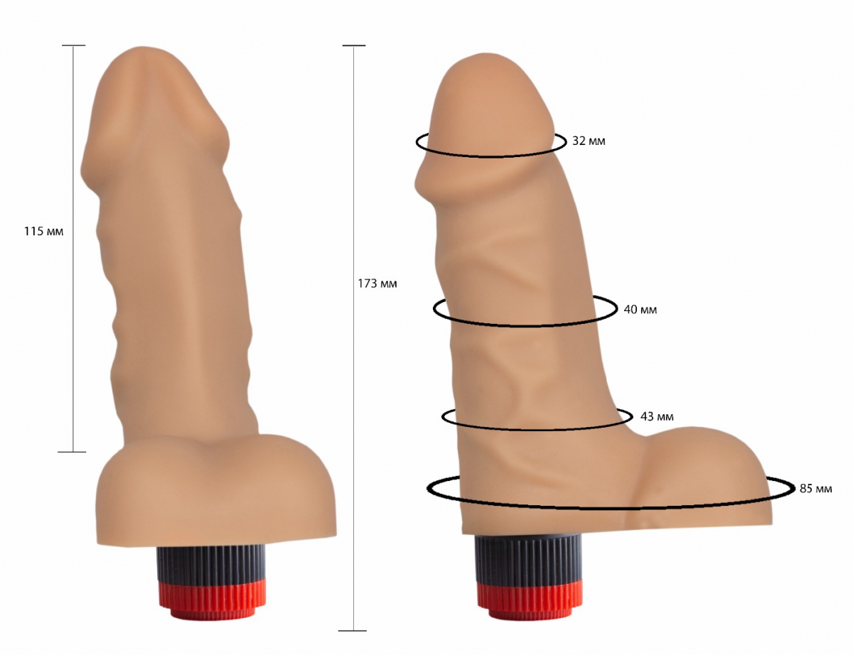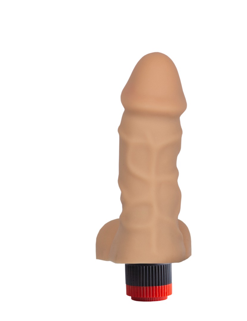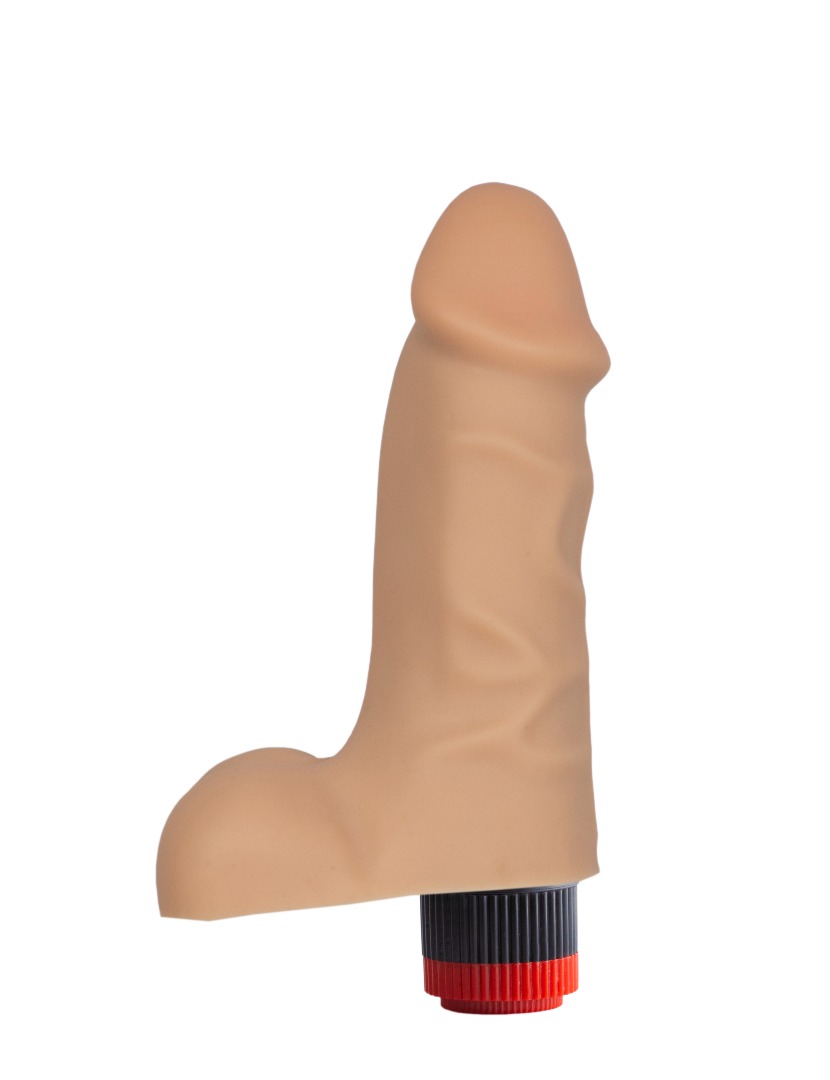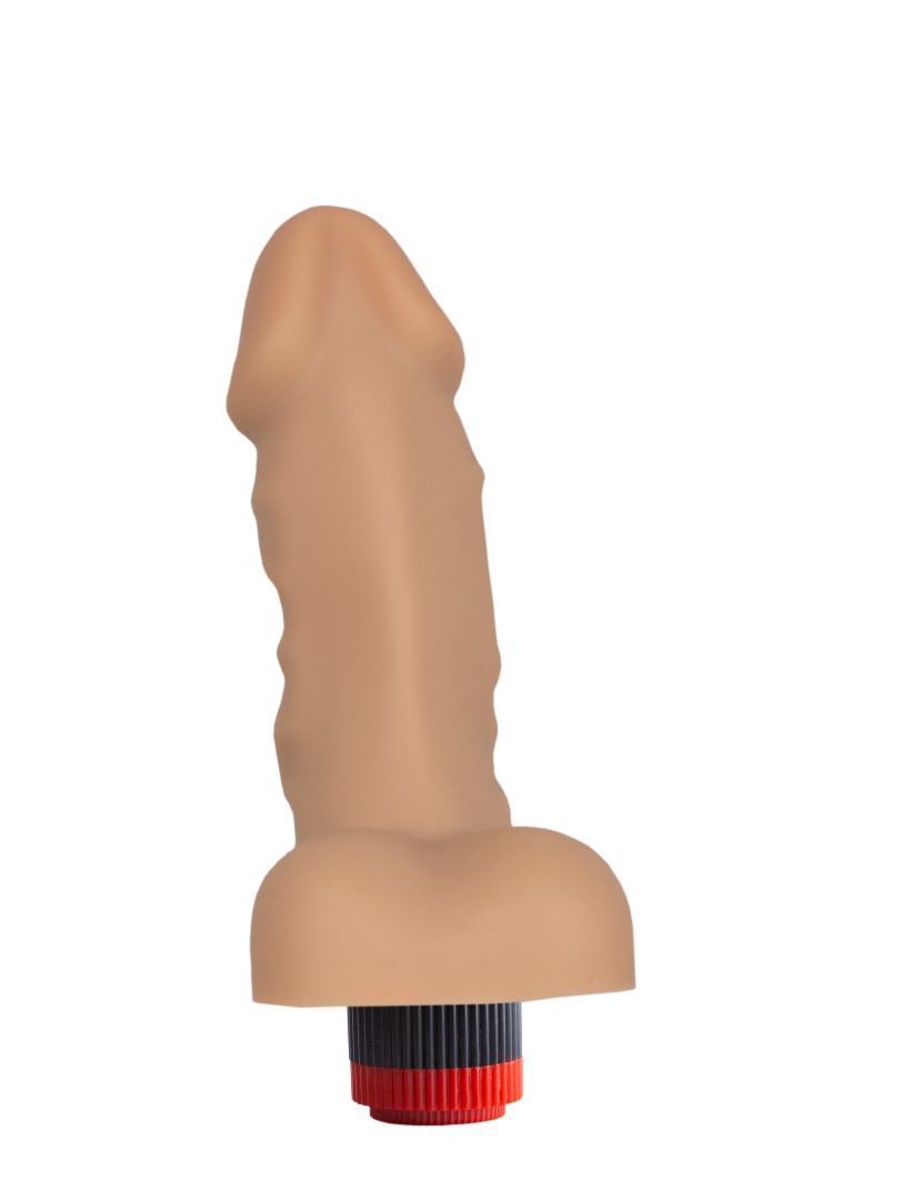 Вибромассажёр телесного цвета. Имеет форму члена с мошонкой и ярко выраженной головкой. Необычайно приятный, рельефный, выполненный из «Киберкожи» , передающий эффект мягкой реалистичной текстуры кожи, не имеет швов. Виброэлемент расположен по всей длине изделия. Степень вибрации регулируется при помощи кнопки, расположенной в основании.