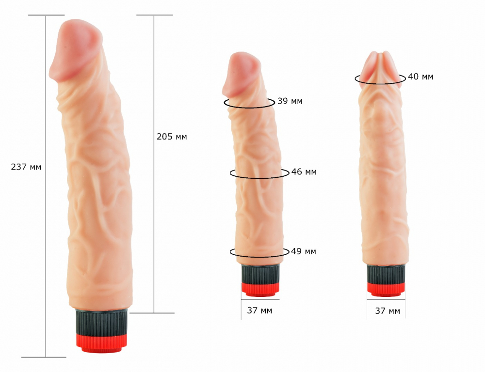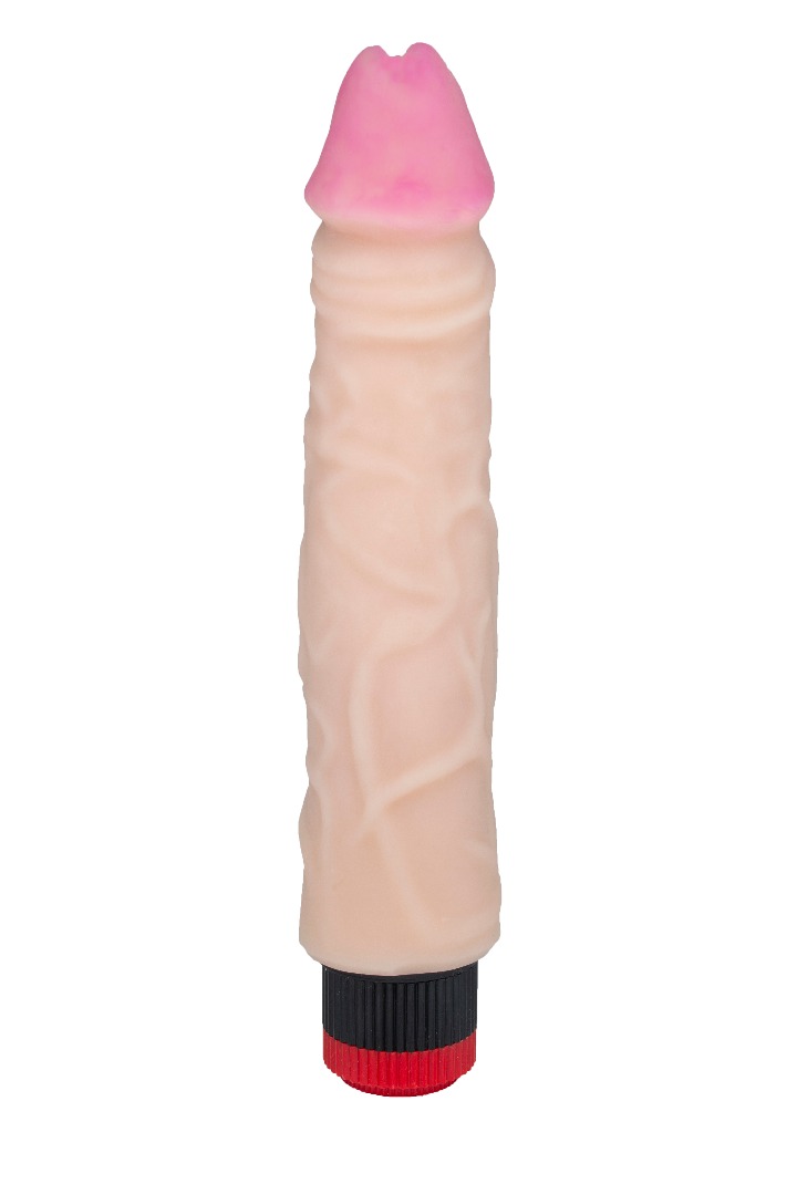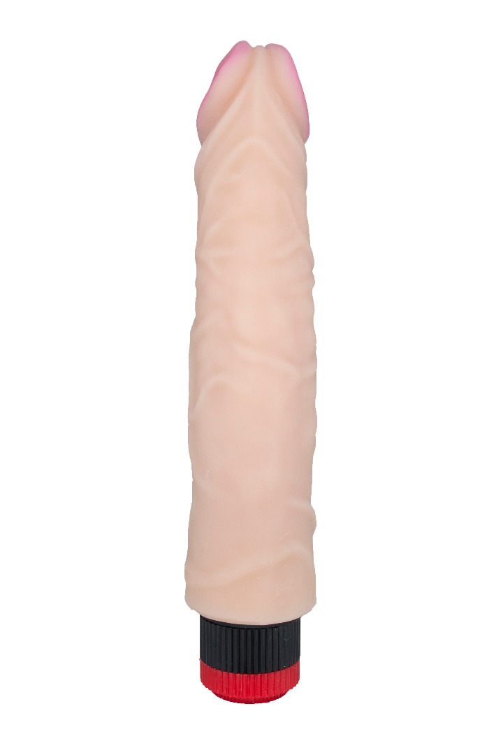 Вибромассажёр телесного цвета. Имеет форму члена с ярко-выраженной головкой. Необычайно приятный, рельефный, выполненный из «Киберкожи», передающий эффект мягкой реалистичной текстуры кожи, не имеет швов.