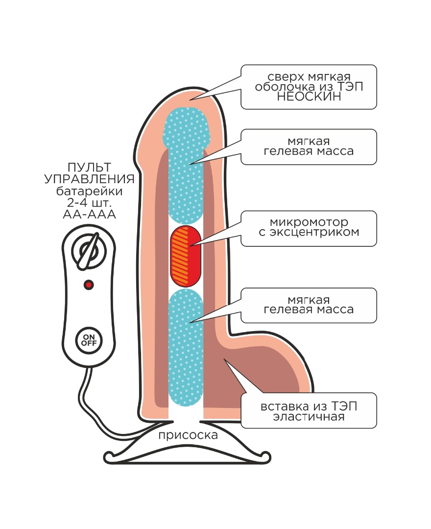 Вся линейка Real Next из 6 моделей с размерами, несколько крупнее, чем обычно и эта модель не исключение. Массажер снабжен вибратором с управлением через пульт и 10 режимами вибрации.