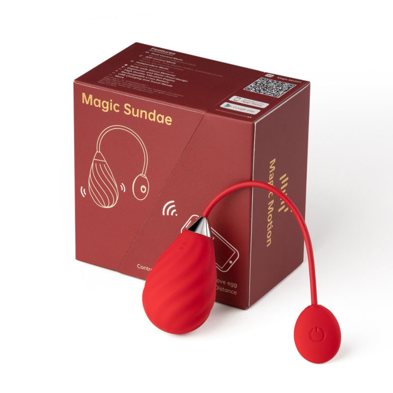 Контролируйте удовольствие при помощи одной кнопки! Одним нажатием включайте девайс и меняйте режимы вибрации. Sundae оснащено 10 режимами вибрации и синхронизируется со смартфоном, где вы сможете контролировать каждый режим или создать свой. Управлять игрушкой можно с помощью приложения на смартфоне: скачайте бесплатное приложение Magic Motion. Это маленькое, милое и интеллектуальное яичко-вибратор сможет подарить Вам долгие минуты блаженства как во время соло игр, так и во время интимных игр с партнером на расстоянии.